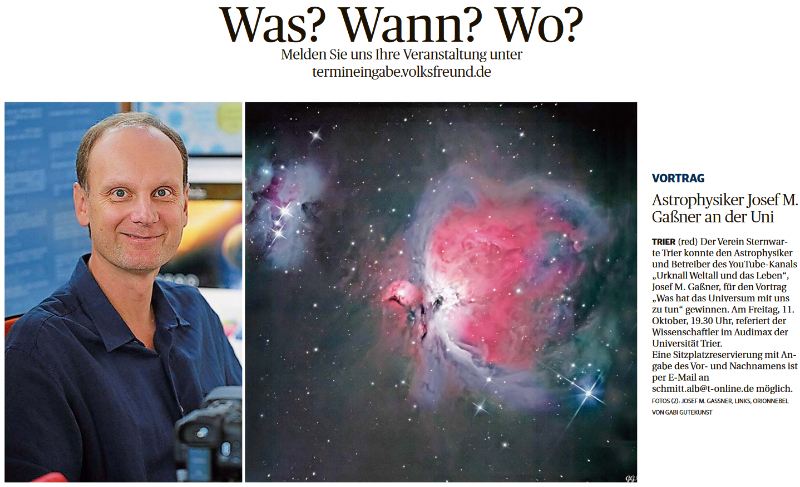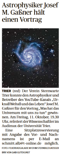 Trierischer Volksfreund vom 14.10.2019 Ankündigung 2 - Trierischer Volksfreund vom 7.10.2019 Ankündigung 1 - Trierischer Volksfreund vom 13.9.2019