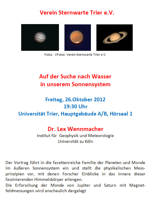 Dieser Vortrag führt in die facettenreiche Familie der Planeten und Monde im äußeren Sonnen-system ein und stellt die physikalischen Messprinzipien vor, mit denen Forscher Einblicke in das Innere dieser faszinierenden Himmelskörper erlangen.